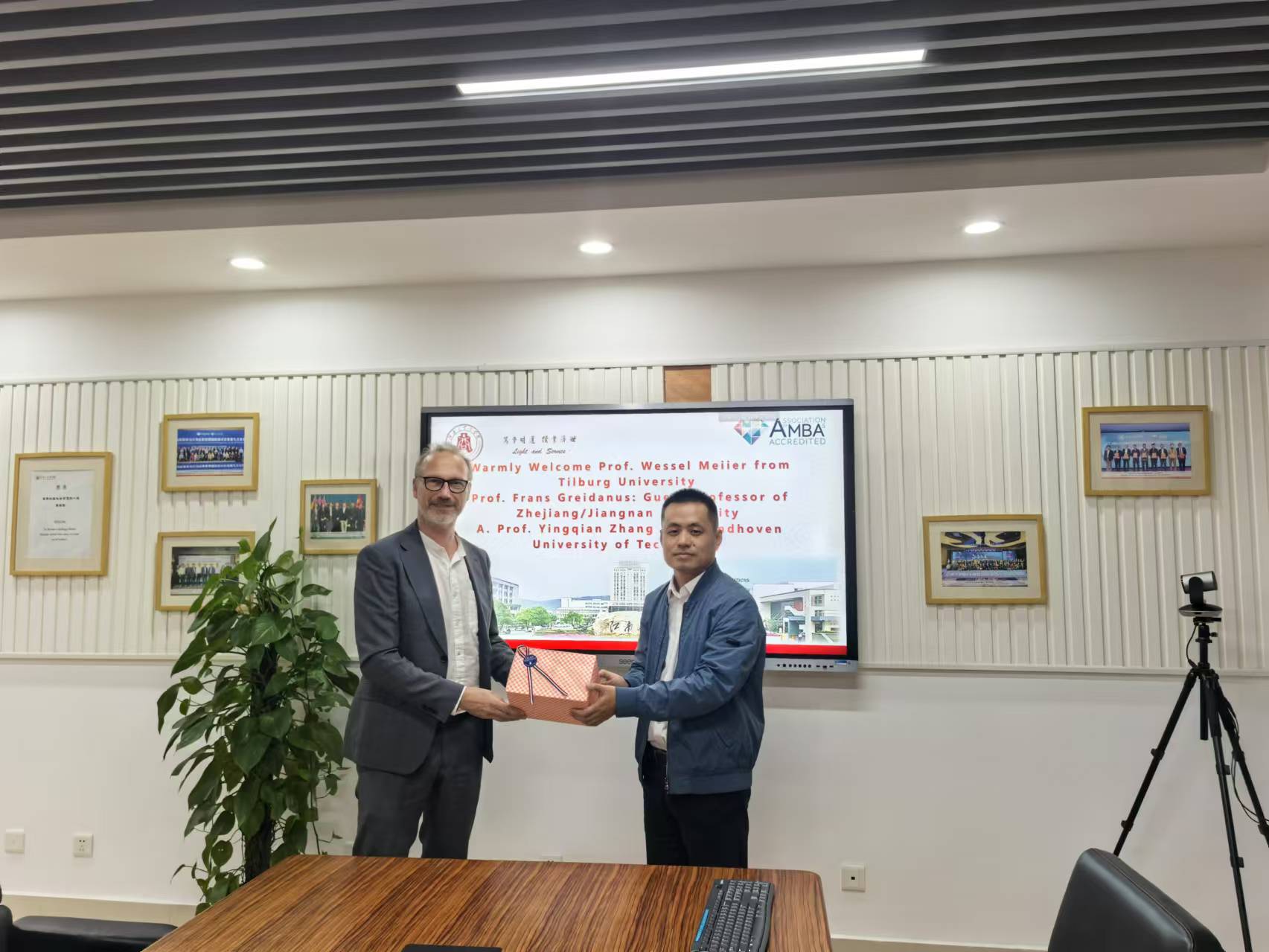 During the discussion, Professor Pu Xujin extended a warm welcome to the three professors and expressed sincere gratitude to Professor Frans Greidanus for his outstanding contributions to promoting academic exchange and cooperation between Jiangnan University, Tilburg University, and Eindhoven University of Technology.
