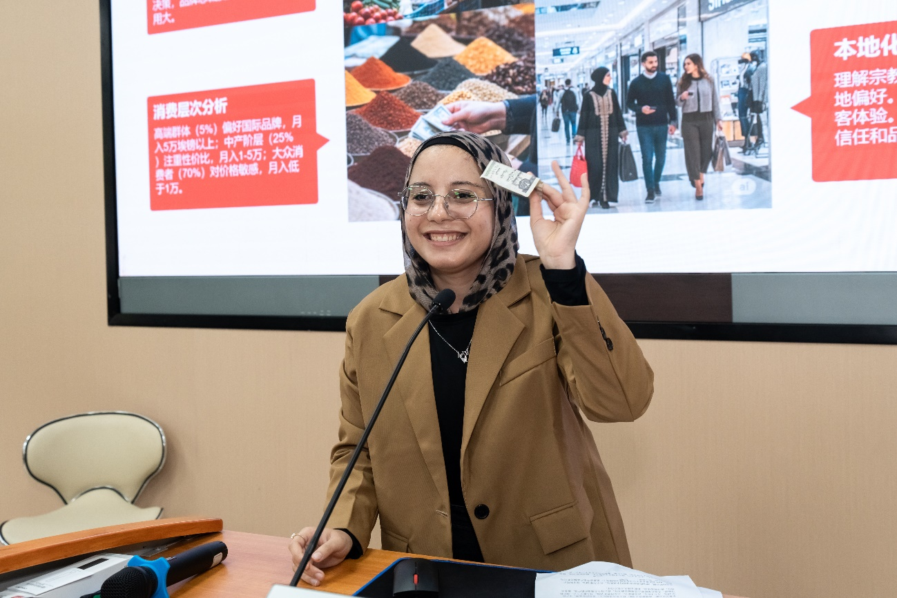 During the International Student Forum segment, Mr. Sangar Wahidullah and Mr. Bilal Rezai, Cohort of 2024 MBA students from Afghanistan, delivered a presentation titled “Afghanistan’s Strategic Role in the Belt and Road and Silk Road.” They introduced Afghanistan’s geographical landscape and analyzed its economic and trade potential as a strategic hub connecting Eurasia., Ms. Shahenda Gamal Shaban Mahmoud Abdelazem, a Cohort of 2024 MBA student from Egypt, delivered a keynote titled “In-Depth Analysis of Egypt’s Consumer Market: Opportunities, Challenges, and Success Strategies.” Drawing on local insights, she revealed new market opportunities and used detailed data and case studies to offer valuable regional decision-making references for the attending enterprises.