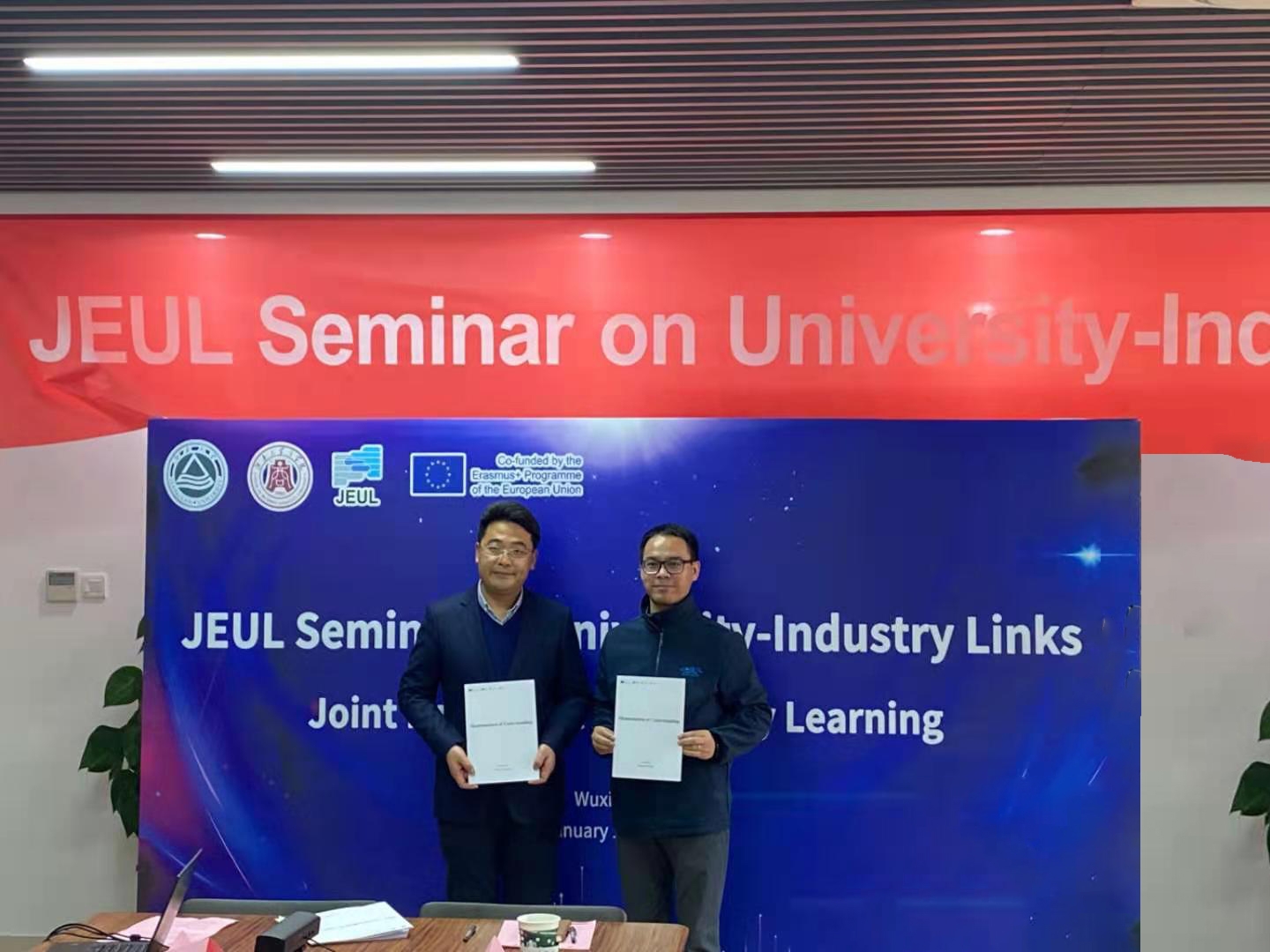 From January 18 to 19, the JEUL Seminar on University-Industry Links funded by EU Erasmus+ was held at School of Business, focused on the sharing of experience among members in university-enterprise cooperation. The conference was attended, both online and offline, by 85 representatives from nine universities, institutions and enterprises from China, the United Kingdom, Italy, Vietnam, Lithuania, the Czech Republic, and Belgium. Deputy Director of the International Exchange and Cooperation Office of JNU Cai Jianying, Secretary of the Party Committee of the School of Business Zhang Haifeng, Vice Deans Wang Yuhong and Qian Wuyong, and representatives of six enterprises participated in the opening ceremony, which was presided over by Professor Wang Yuhong, vice dean of the School of Business.