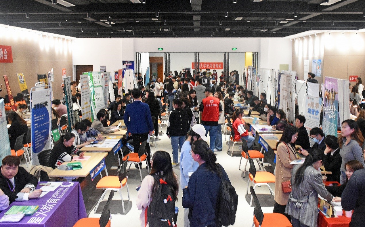 At the beginning, Dean Teng Lefa and Deputy Secretary and Deputy Dean Xu Jing had a face-to-face conversation with the employers and the students at the fair to learn about the recruitment requirements and the students’ demands.
