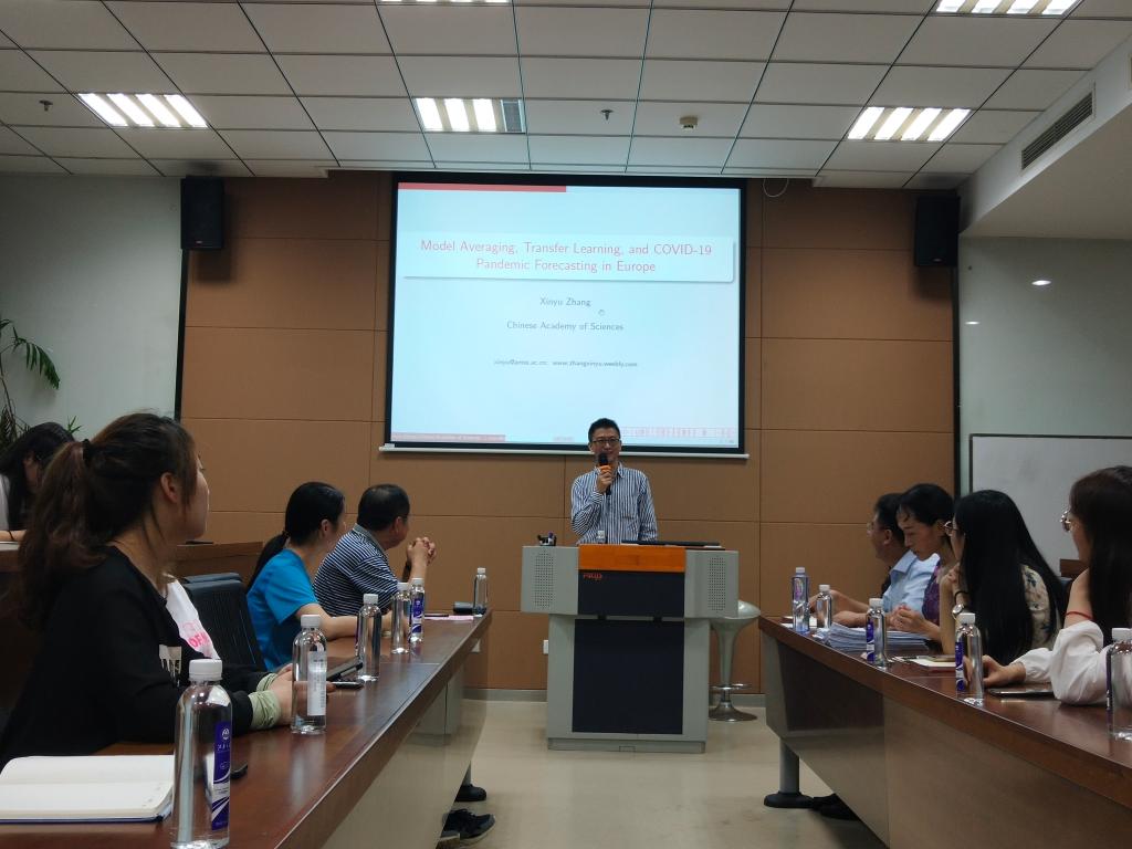 讲座最后,张新雨研究员与我院师生就研究样本的选取、疫情防控措施的影响,迁移模型选取分组的机理等问题进行了讨论交流。本次讲座,对提高学院师生对模型平均等相关理论研究前沿的把握大有裨益,也将对部分研究生开展预测理论与方法研究提供前瞻的理论指导,也将进一步推动学院师生加强与国内一流学者的学术交流与合作。