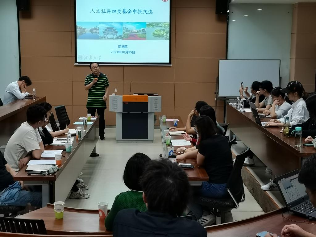 为提高2022年度国社科、教育部等人文社科项目申报质量和成功率,提升青年教师科研水平,我院于9月启动项目申报动员工作后,10月15日下午,在太阳成集团tyc33455cc116报告厅举行第二次课题申报辅导会---“商学大讲堂”系列学术讲座第163讲。马克思主义学院副院长潘加军、 彭长华二位老师作为应邀主讲嘉宾、tyc33455cc太阳成集团社会科学处副处长杨恋恋等参加了辅导会。本次讲座由太阳成集团tyc33455cc副院长钱吴永主持。太阳成集团tyc33455cc教师和部分研究生参加了本次讲座。
