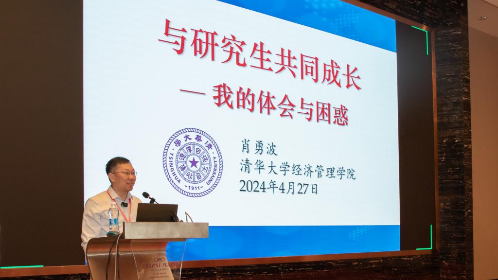 清华大学经济管理学院管理科学与工程系教授肖勇波作题为“与研究生共同成长——我的体会与困惑”的主题报告,他以全链条指导博士生为切入点,从选题、凝练科学问题、建模、推导、挖掘启示、写论文做ppt六个方面,为大家介绍了如何培养一名研究生进行学术研究,提出“有趣+重要=有影响力”的公式。