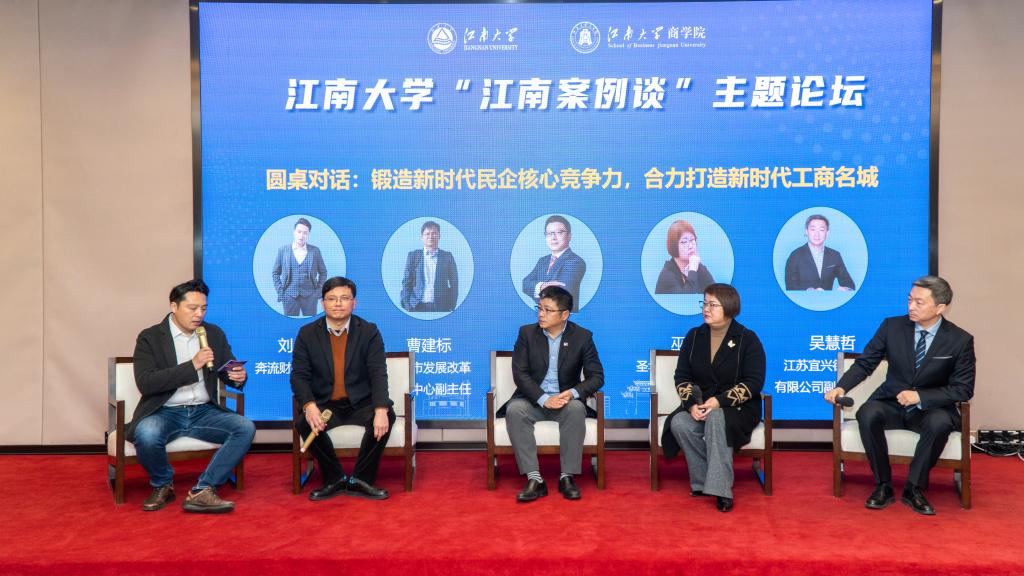 “锻造新时代民企核心竞争力,合力打造新时代工商名城”为主题,几位嘉宾都带来了精彩的观点分享,既有理论高度、又有实践深度。曹建标重点解答了无锡在打造新时代工商名城过程中,如何在“新时代”、“工商”、“名城”这三个关键领域发力;邢奕分享了无锡“既强又美”的经济环境特征,从产业和企业韧性、自然环境的角度进行了诠释;巫瑛从锻造新时代民企核心竞争力的角度出发,重点剖析了圣华盾防护科技股份有限公司在人才梯队建设、智改数转方面的经验,并强调了企业坚持长期主义的重要意义;吴慧哲从江苏宜兴德融科技有限公司的核心产品出发,指出企业的创新能力、创新文化是锻造民营企业核心竞争力的关键手段。