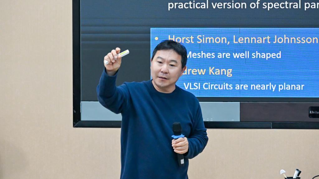滕尚华教授以《Intelligent Heuristics Are the Future of Computing》为主题作报告,深入探讨了启发式算法的概念,以及其在现代计算中的核心地位和重要作用。滕尚华结合自身在理论计算领域的研究经历,分享了启发式算法在谱划分、多级方法、进化算法等领域的理论突破。他特别强调,随着数据规模和复杂性的不断增加,启发式算法在AI和数据挖掘中的应用前景将更加广阔。