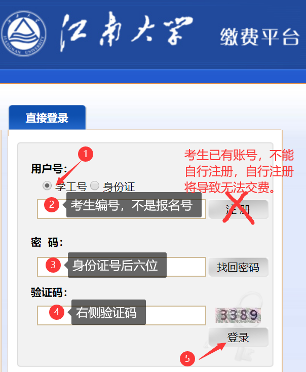 缴费说明:进入复试考生在学院规定的时间内登录“tyc33455cc太阳成集团缴费平台”交纳复试费用,复试收费标准:80元/生。缴费网址:http://pay.jiangnan.edu.cn/payment/。登录账号为准考证上的考生编号,登录密码为身份证后六位(友情提醒:考生账号已开通,切勿自行注册)。按照提示交费(使用网银),并打印或截图保存付费凭证。