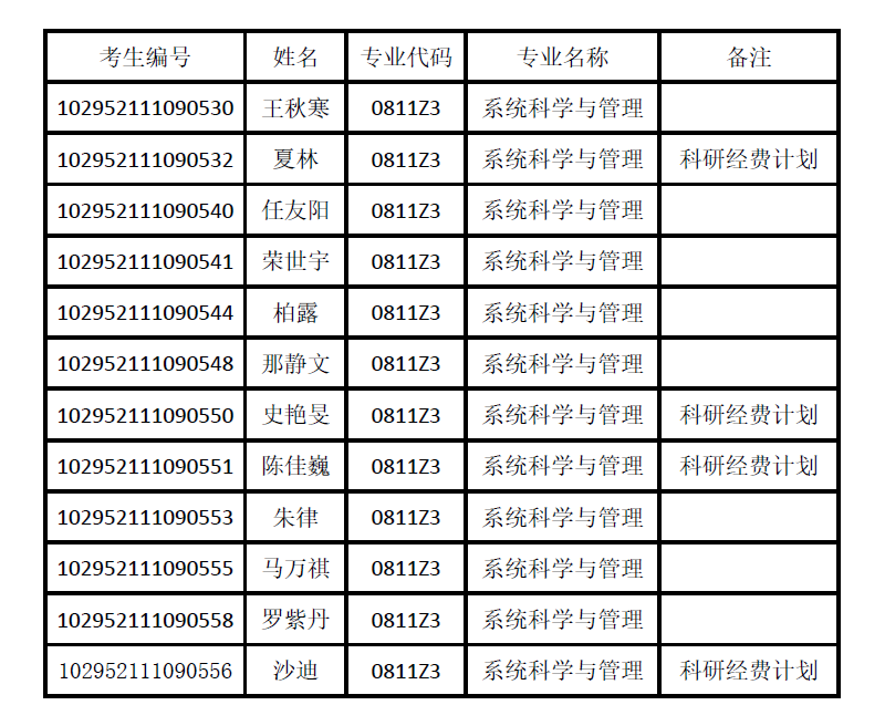 现公布我院建议录取名单,名单可能因学校下达招生名额等情况发生变更,请及时关注。实际录取名单以学校研究生招生工作领导小组审核通过、研究生院公示拟录取名单无异议、教育部最终审定为准。