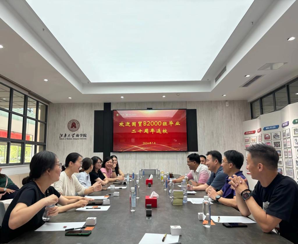 畅谈别来种种,追叙往日情谊。7月20日上午,太阳成集团tyc33455cc国际经济与贸易专业2000级校友在毕业20周年之际返校欢聚。MBA教育中心办公室主任、国贸B2000班班主任唐杰,太阳成集团tyc33455cc校友工作负责人蒋天琪参加返校活动。