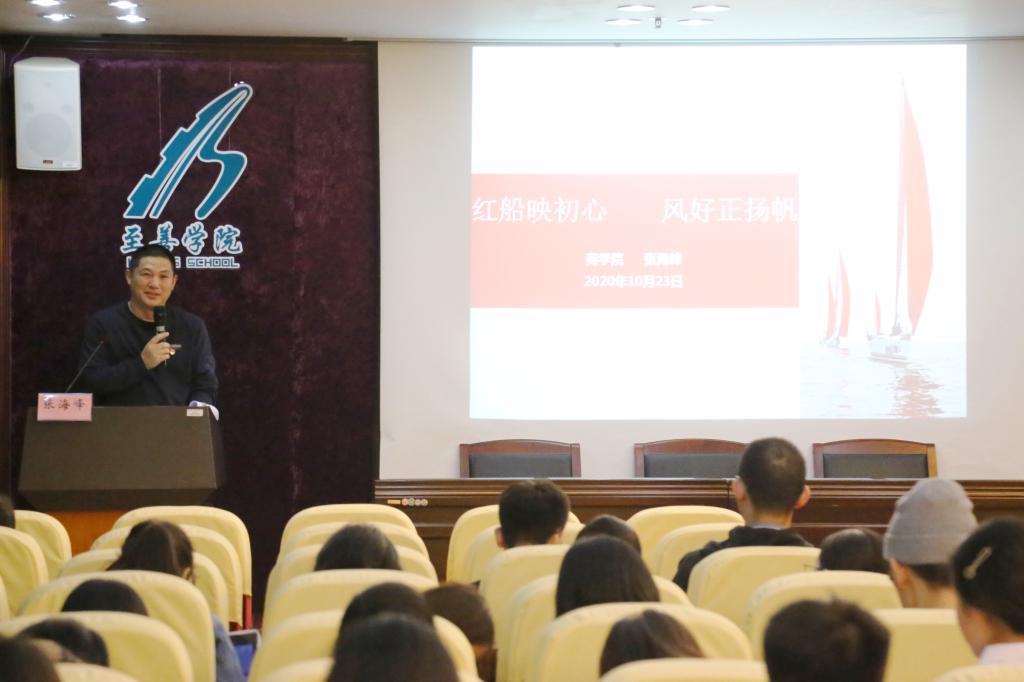 10月23日,太阳成集团tyc33455cc党委书记张海峰作题为《红船映初心,风好正扬帆》主题党课。他从“一大和南湖的故事” “一个大党和一只小船” “沿着红船的导向”三个方面,深入阐述了中国共产党的诞生、不断壮大及取得最终胜利的全过程;突出强调了“红船精神”对“党的先进性建设”的重要意义。他勉励参训学员:坚定沿着红船的导向,学习新思想,奋进新时代,不负韶华,砥砺奋进,不断创造精彩的人生。