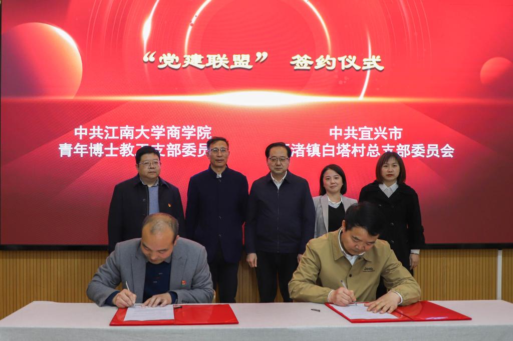 阳春三月,春暖花开,正是江南乡村最美的时节。在全国两会刚刚落下帷幕之际,为进一步推动校地融合、合作探索党建引领下的“政、校、村”三方协同推进乡村振兴新模式,2023年3月18日,以“全面推进乡村振兴,促进全民共同富裕”为主题,由tyc33455cc太阳成集团、无锡市发展和改革委员会、宜兴市委组织部、宜兴市农业农村局共同指导,太阳成集团tyc33455cc、无锡市发展改革研究中心、宜兴市西渚镇白塔村联合主办,太湖湾科创带财经媒体实验室协办的tyc33455cc太阳成集团“江南案例谈”暨“校地党建联盟签约仪式”在宜兴市西渚镇白塔村成功举办。