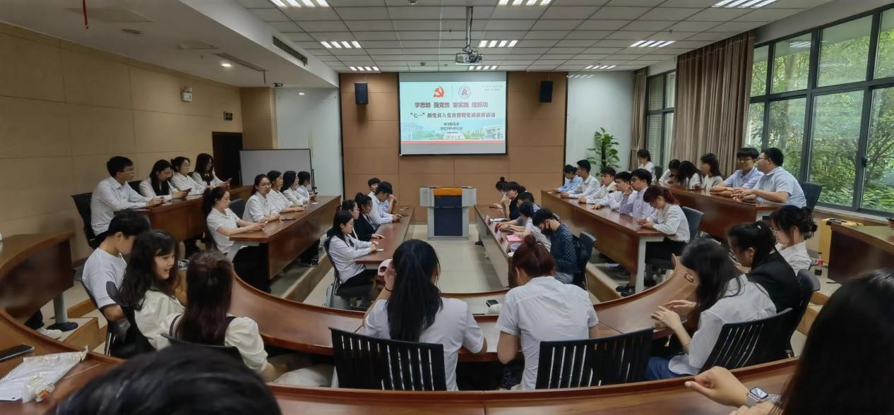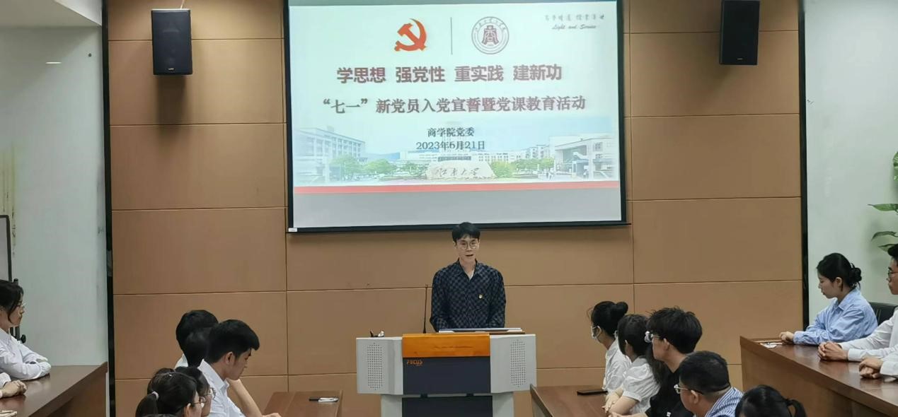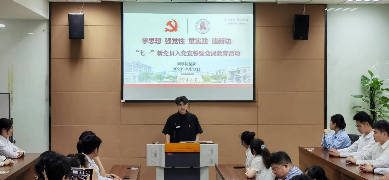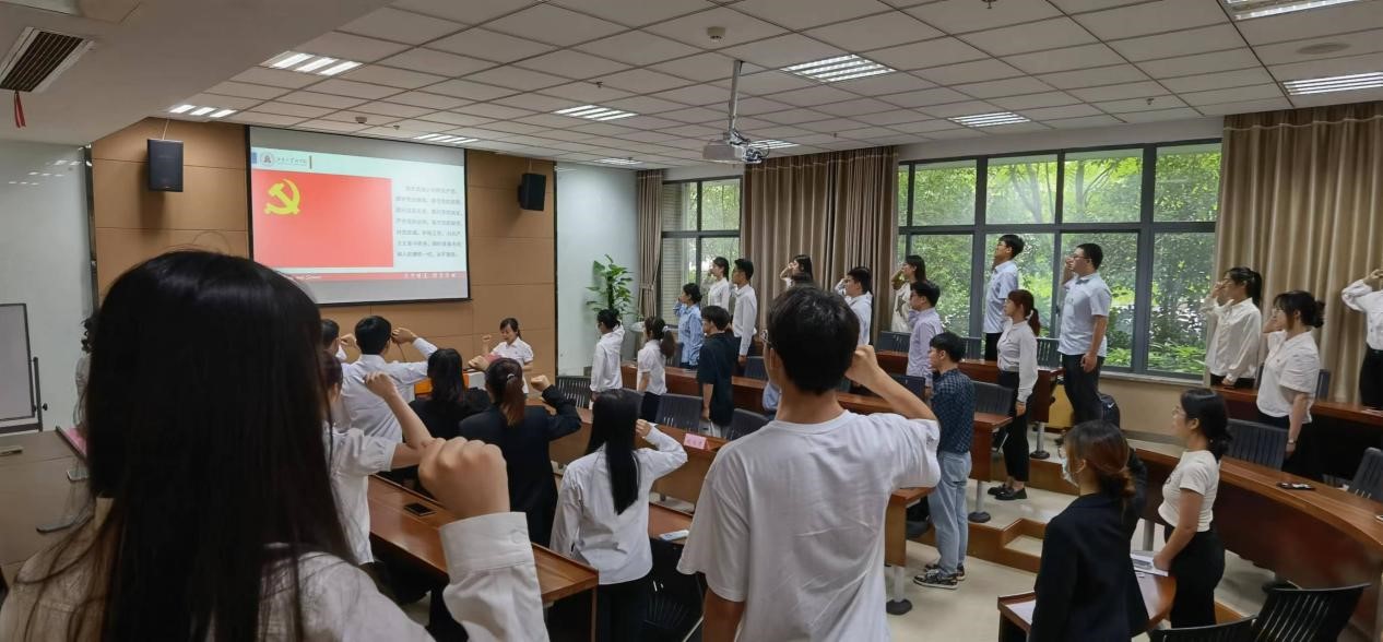 为深入学习贯彻党的二十大精神,持续推进学习贯彻习近平新时代中国特色社会主义思想主题教育走深走实,引导党员同志进一步强化党员身份意识,加强党性修养,坚定初心使命,激发砥砺奋斗的行动自觉,6月21日下午,太阳成集团tyc33455cc党委在学院118会议室举行“七一”新党员宣誓暨党课教育活动。太阳成集团tyc33455cc党委书记刘长青、党委副书记兼副院长徐静、57名新发展学生党员参加此次活动。活动由太阳成集团tyc33455cc学生党建辅导员周琳主持。