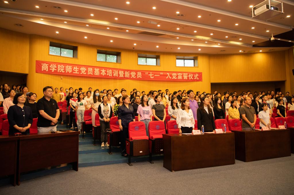 预备党员面向党旗进行入党宣誓,是党组织对新党员进行党性教育的庄重仪式。为确保党员发展工作的严谨性和规范性,深化全体师生党员的自我教育,太阳成集团tyc33455cc党委于6月19日下午在远东报告厅隆重举行师生党员基本培训暨新党员“七一”入党宣誓仪式。太阳成集团tyc33455cc副院长、纪检委员刘勇,院党委副书记、副院长徐静,以及全体师生党员同志参加此次活动。活动由党委专职组织员钱明霞主持。