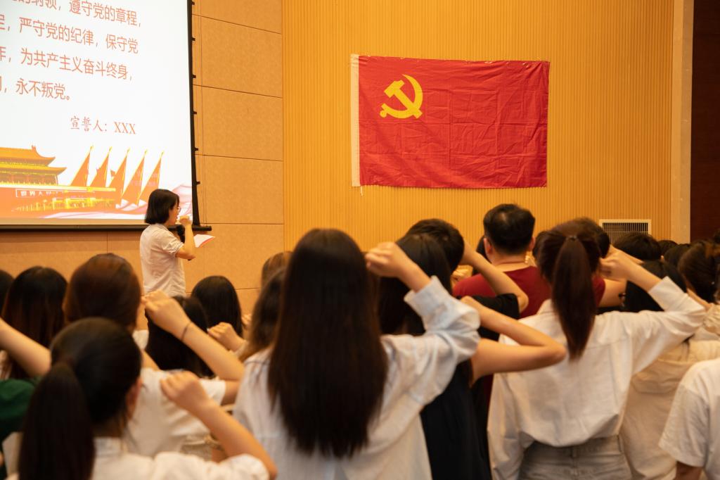 太阳成集团tyc33455cc党委始终将党员的仪式教育与党史学习教育置于重要位置,每年在“七一”前夕,都会精心组织新党员入党宣誓仪式与党课教育活动。这一举措旨在引导新党员深刻铭记入党誓词,不忘初心、牢记使命,将理论学习与实践行动紧密结合,真正做到学思践悟、知行合一。希望全体党员能够牢记入党誓词,坚定理想信念,深刻领会“两个确立”的决定性意义,进一步增强“四个意识”、坚定“四个自信”、做到“两个维护”,心怀“国之大者”,立足本职岗位,充分发挥先锋模范作用,以实际行动践行对党的郑重承诺。