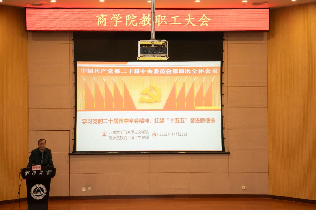 会上,tyc33455cc太阳成集团马克思主义学院教授、博士生导师陈永杰作《学习党的二十届四中全会精神,扛起“十五五”奋进新使命》专题宣讲。他紧扣三大核心维度层层递进、逐步深入:其一,聚焦“十五五”规划编制的重大价值,深入解读规划与党的二十大部署的内在衔接,深刻剖析党中央高度重视“十五五”规划编制的核心逻辑与战略考量;其二,系统回顾“十四五”时期我国在经济社会发展、科技创新、民生保障等领域取得的历史性成就与突破性进展,进一步夯实教职工立足岗位、干事创业的发展自信与责任担当;其三,以“十五五”时期发展指导思想与基本原则为遵循,生动擘画2035年基本实现社会主义现代化的宏伟蓝图,着重强调“治国必先治党,党兴才能国强”的深刻内涵,明确指出全面从严治党是实现宏伟目标的根本保障与关键支撑。