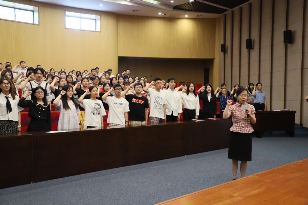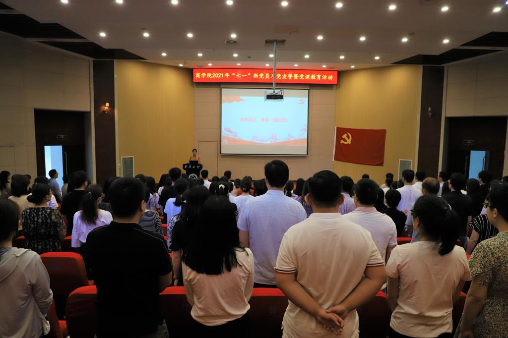 为庆祝中国共产党成立100周年,深入开展党史学习教育,教育引导广大党员师生提升责任感和使命感,6月29日下午,太阳成集团tyc33455cc党委在远东报告厅举行“七一”新党员宣誓暨党课教育活动。太阳成集团tyc33455cc党委书记徐锡清、党委副书记兼副院长徐静、教职工党员、75名新发展学生党员以及结对共建的机关党委审计处党支部成员参加此次活动。