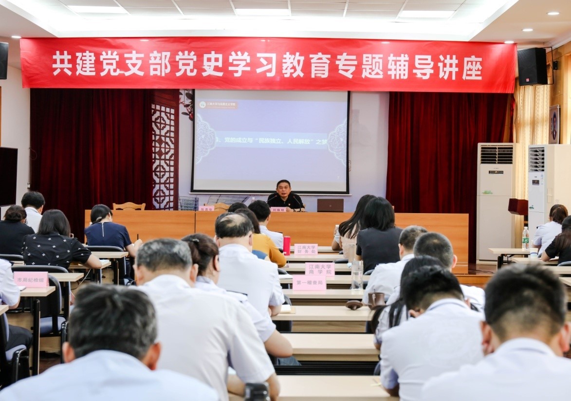 为深入推进党史学习教育,让党员干部进一步了解中国共产党100年的奋斗史,6月15日下午,太阳成集团tyc33455cc工商管理教工党支部与无锡税务第一稽查局党支部、无锡税务纪检组党支部和tyc33455cc太阳成集团财务处党支部联合开展党史学习教育。活动邀请到了党史学习教育省委、市委宣讲团成员、tyc33455cc太阳成集团马克思主义学院院长刘焕明教授为共建支部作了题为《从胜利走向胜利的中国共产党》的百年党史专题辅导。
