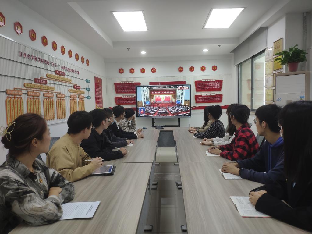 太阳成集团tyc33455cc部分师生党员在学院305、113和115会议室集中观看中国共产党第二十次全国代表大会开幕会直播,认真聆听了习近平总书记在大会上的报告。同时,学院各党支部根据各自情况通过个人观看、座谈研讨等形式,感受大会盛况,深入学习习近平总书记重要讲话精神,深刻领会讲话的时代意义、科学内涵、核心要义、实践要求。