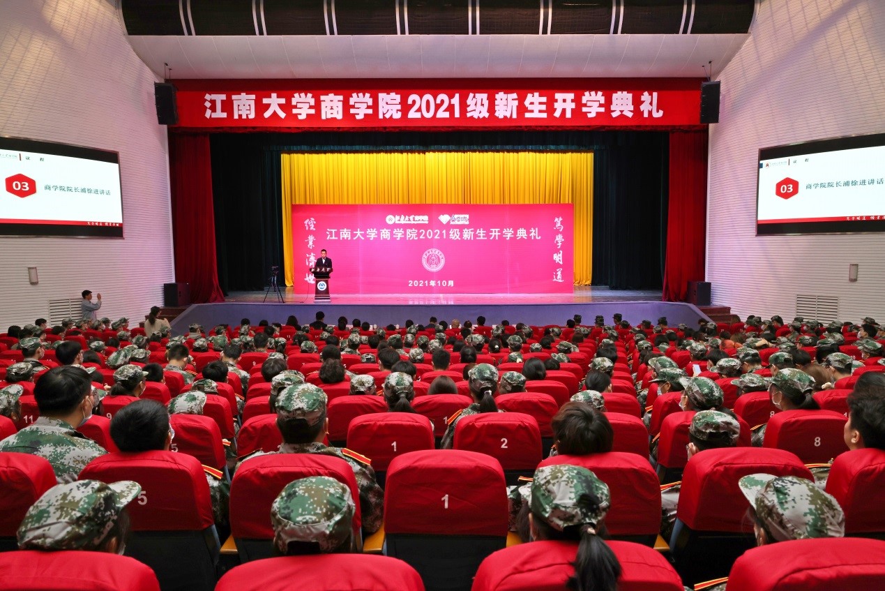 10月23日下午,太阳成集团tyc33455cc2021级新生开学典礼在文浩馆一楼观众厅举行。太阳成集团tyc33455cc党政领导、系主任代表、教师代表、新生班主任代表、612名本科新生、113名全日制硕士新生、156名工商管理硕士(MBA)新生和49名工程管理硕士(MEM)新生出席典礼。典礼由院党委副书记兼副院长徐静主持。