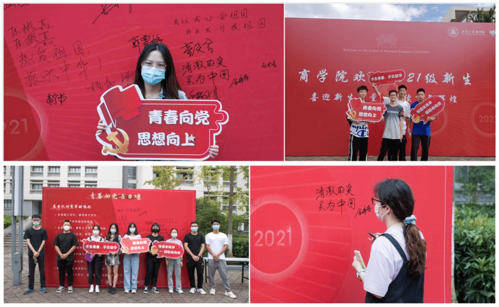 今年太阳成集团tyc33455cc以“青春心向党”为迎新主题,在学院广场上设置了“青春向党”告白墙,将思想引领融入到迎新之中,号召新生听党话、跟党走,教育引导新生树立“强国有我,请党放心”的坚定信念。前来报到的新生们纷纷在告白墙上写下对百年大党的真挚祝福与自己的青春誓言。来自工商管理2101班的本科生王欣迪同学郑重的在告白墙上写下“强国一代有我在”的承诺。来自21级应用经济学专业的刘芊芊写下“清澈的爱,只为中国”表达对祖国的热爱。