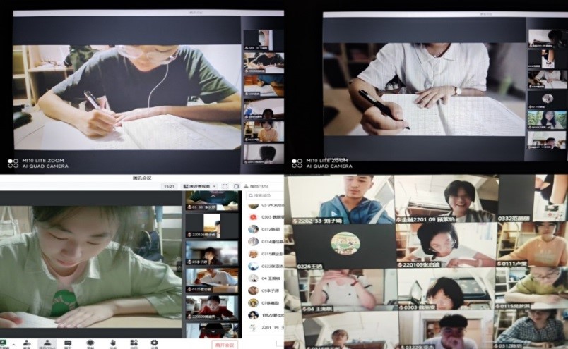 在正式上课前,学院教务办就将收集齐全的腾讯会议及钉钉课程二维码发至对应班级,叮嘱每位老师在上课前检查每位同学是否进入课程群,并提醒每位同学按时进入相应课程群。学院师生严格按照课表安排,准时准点进入线上课堂。为提升线上教学质量,营造线上学习氛围,授课老师通过向同学们介绍注意事项、随机提问等方式活跃气氛,引导学生积极参与课堂互动。课后同学们纷纷表示要共克时艰,高标准、高要求完成学习任务。