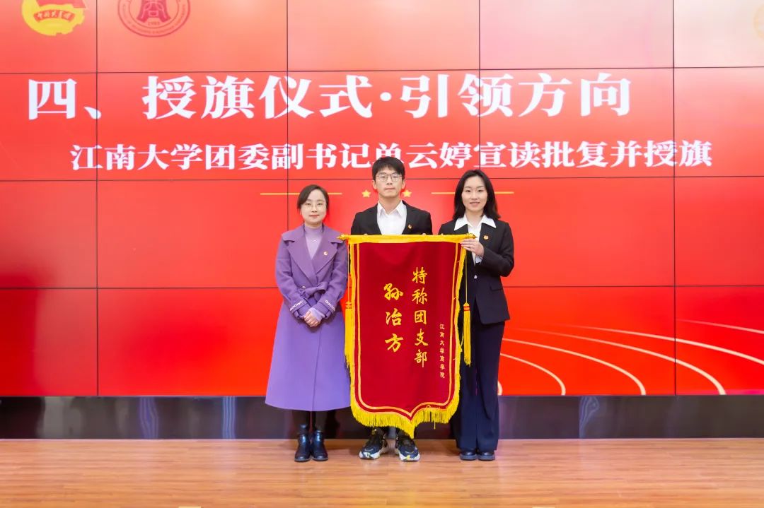 tyc33455cc太阳成集团校团委副书记单云婷向“孙冶方”特称团支部授旗
