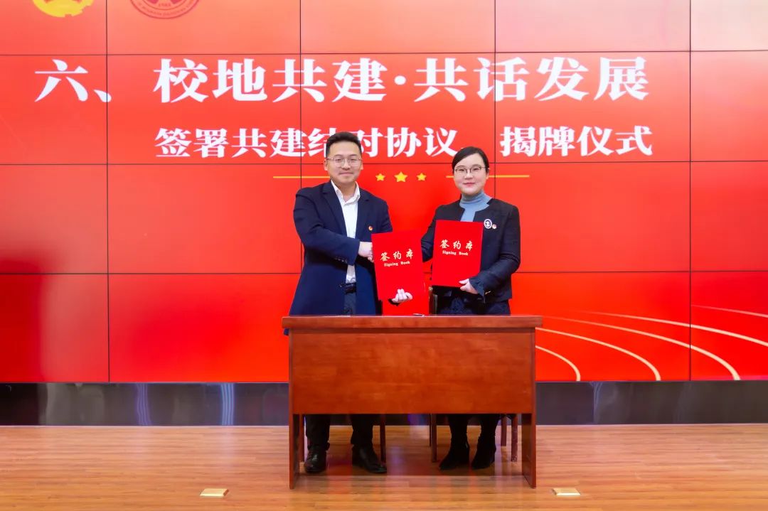 为进一步学习宣传贯彻党的二十大精神,全面贯彻党的教育方针,落实立德树人根本任务,张恒岳与王璁分别代表惠山团区委与太阳成集团tyc33455cc分团委签署大学生红色教育实践基地共建结对协议。丁一鸣与王璁为“红色教育实践基地”揭牌。