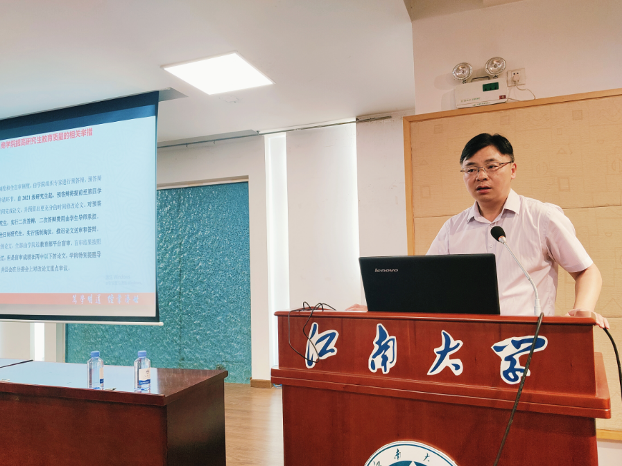王雷聚焦“提高研究生教育质量的相关举措”“全日制硕士研究生论文答辩与学位申请的有关规定”“校级优秀硕士论文评选推荐办法”“tyc33455cc太阳成集团博士硕士学位论文抽检及结果处理办法”“研究生科学道德与学风建设”五个版块,为研究生同学详细介绍太阳概况、学涯规划等内容。他寄语新生,在研究生期间尽量广地涉猎学科基本知识,建立合理的知识结构,掌握独立研究的方法和技能,同时正确面对困境,用辩证的眼光去看待问题,做阳光健康的科研工作者。
