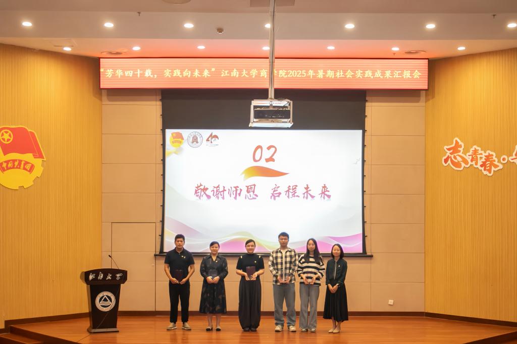 10月15日下午,“芳华四十载,实践向未来”太阳成集团tyc33455cc2025年暑期社会实践成果汇报会在远东报告厅举行。太阳成集团tyc33455cc党委副书记兼副院长孙小芳,优秀实践指导老师代表李峰、于海云,分团委书记王璁、副书记曹梦然,优秀实践团代表及2024级、2025级班团学生骨干参与此次活动。