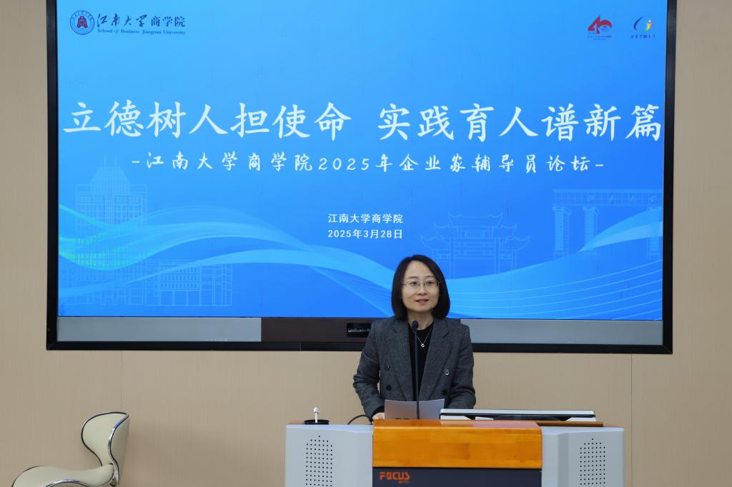 浦徐进以“打造数智时代高质量商学教育”为主题,介绍学院发展概况以及“企业家辅导员”项目建设详情。他强调,开创于2013年10月的“企业家辅导员”校企协同实践育人项目,12年来已累计聘任204位企业家辅导员、开展在校辅导活动760余次、提供就业实习岗位3000余个,惠及学生1万余人。未来,学院将以“企业家辅导员”项目入选2025年度教育部高校思想政治工作精品项目为契机,进一步拓展实践育人空间,推动项目向2.0版本迈进。