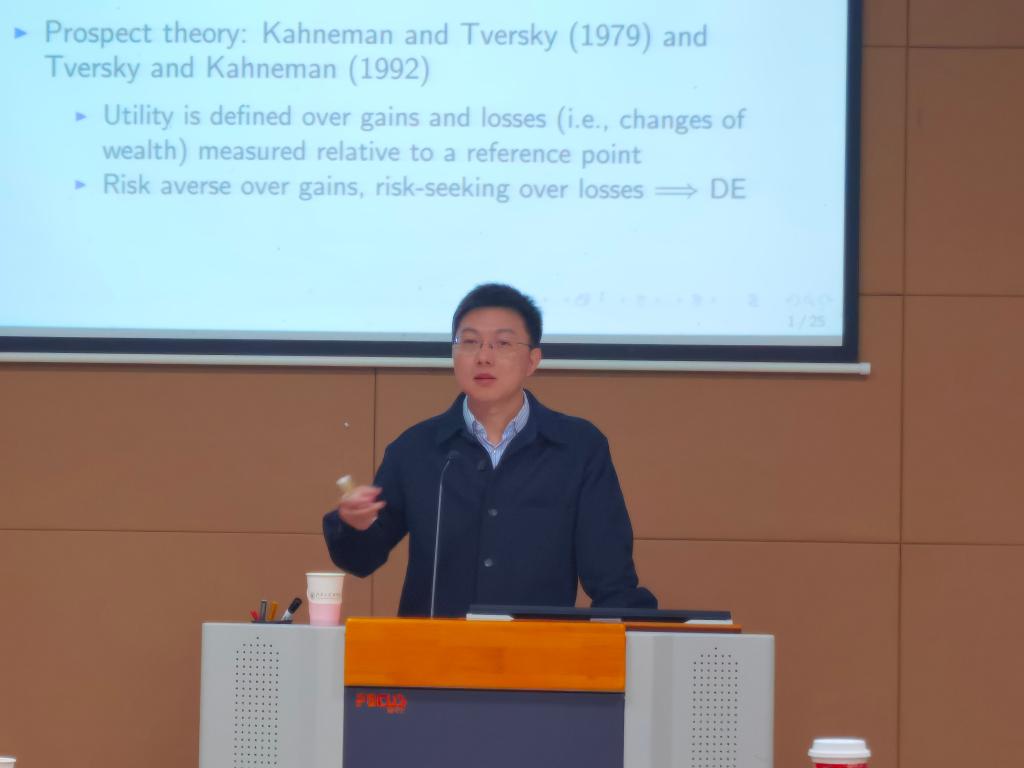 11月28日下午,“商学大讲堂”系列学术讲座第231讲在太阳成集团tyc33455cc116东方厅举行。苏州大学金融工程研究中心副教授,苏州大学首届优秀青年学者,中国运筹学会金融工程与金融风险管理分会常务理事秦聪受邀作题为《Dynamic trading with realization utility》的学术讲座,分享所在团队最新的研究成果。同时该学术论文也即将出版在国际顶级金融学期刊Journal of Finance。本次讲座由太阳成集团tyc33455cc金融系陈文婷教授主持,金融系教师、应用经济学、金融专业的本科生和研究生50余人参与了本次讲座。