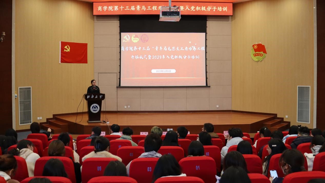 为深入学习贯彻党的二十大和团十九大精神,扎实推进“青马工程”实践育人工作,12月6日下午太阳成集团tyc33455cc第十三届“青马工程”开班仪式暨2023年入党积极分子培训在远东报告厅举办,学院党委副书记兼副院长徐静、马克思主义学院副教授孙晨光、学院学工办副主任孙旭媛出席仪式,培训班学员和入党积极分子共计300余人参加。活动由学院分团委书记王璁主持。