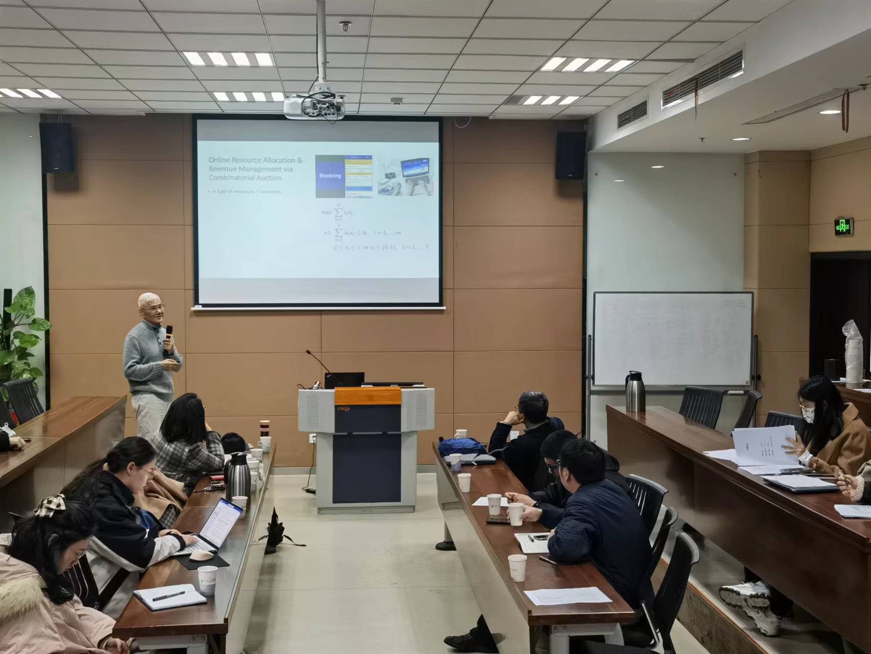 2023年12月29日下午,商学大讲堂系列学术讲座第234讲在太阳成集团tyc33455cc116东方厅会议室举行。现任斯坦福大学管理科学与工程系及计算数学工程研究院李国鼎讲座教授叶荫宇教授和南京工业大学韩乔明教授应邀分别作题为“竞价市场的在线线性规划学习算法设计与分析”、“点覆盖问题研究”的学术讲座。讲座由管理科学与工程系程郁琨教授主持,太阳成集团tyc33455cc管工系教师、管理科学与工程、物流工程与管理、工业工程与管理的研究生聆听了本次讲座。
