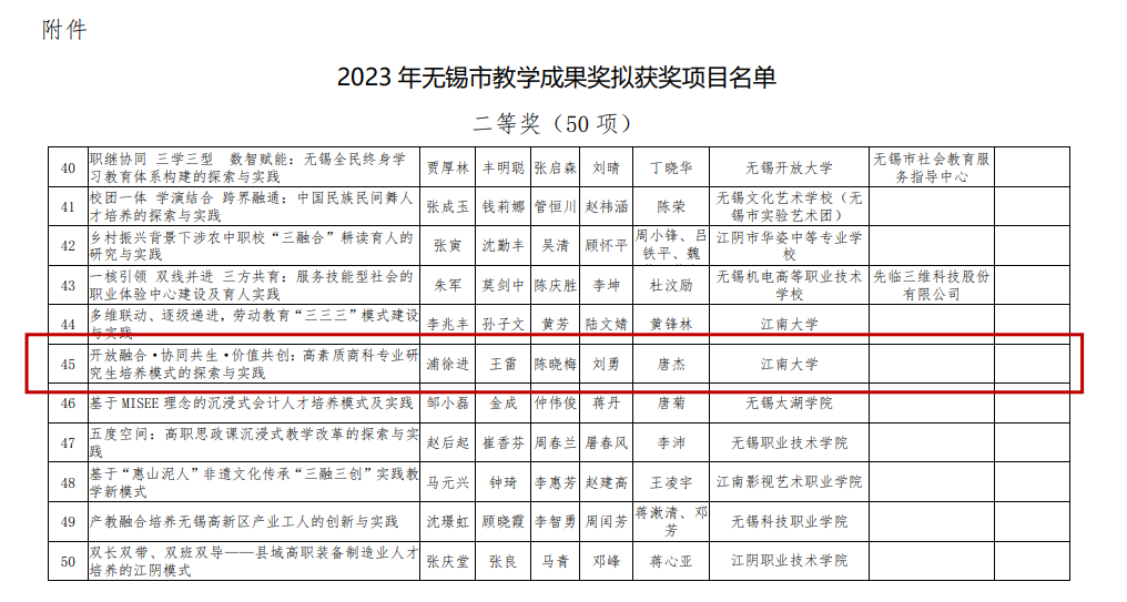 新学期伊始,无锡市教育局公示了2023年无锡市教学成果奖获奖名单。我院申报的“开放融合·协同共生·价值共创:高素质商科专业研究生培养模式的探索与实践”获得无锡市教学成果二等奖。