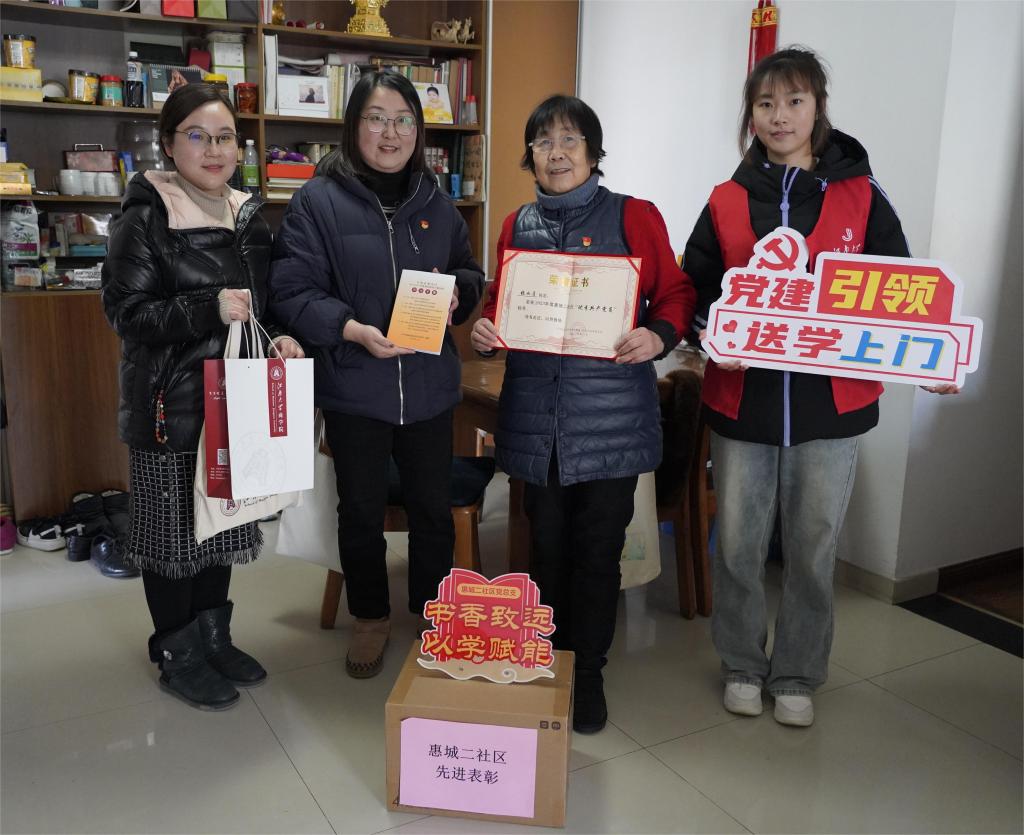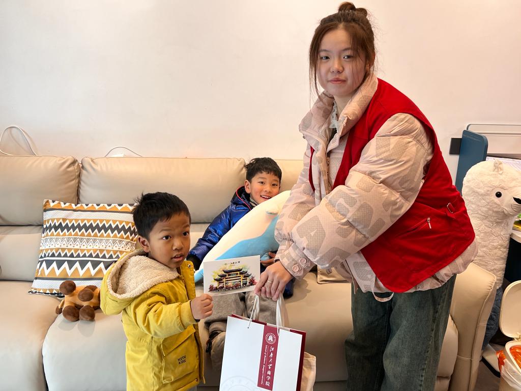 结束便民服务后,江南志愿者们跟随社区工作人员入户走访,看望社区困境儿童、关怀慰问先进老党员。在与孩童互动交流中,志愿者了解其家庭生活和学习情况,倾听他们的实际困难和心中所想,并送上儿童书籍和学习文具等慰问物资。在老党员家中,志愿者与老党员夫妻聊近况、话家常,关心询问其身体健康、生活所需和医疗保障等情况,叮嘱他们有需要就找社区志愿者帮忙。
