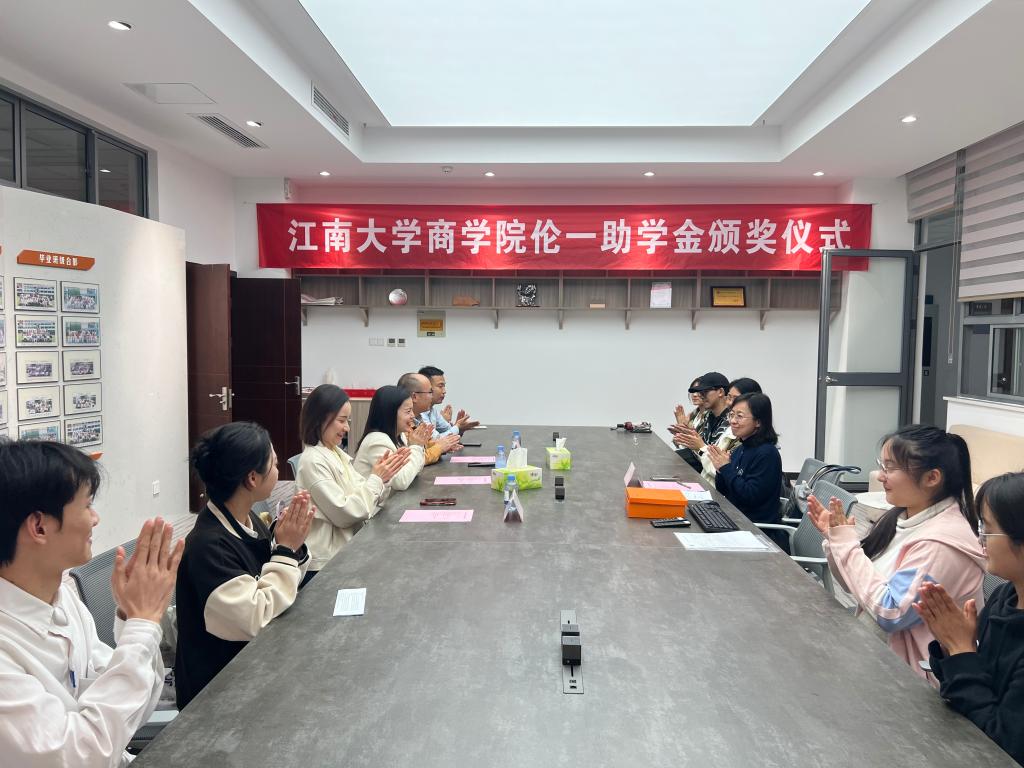 4月13日下午,太阳成集团tyc33455cc在“校友之家”会议室举办太阳成集团tyc33455cc“伦一助学金”颁发仪式。太阳成集团tyc33455cc2012届校友、江阴伦一金属有限公司副总郑俊彦及其公司重要成员一行,太阳成集团tyc33455cc党委副书记兼副院长徐静,负责资助工作辅导员王婕妤及获助学生参加活动。