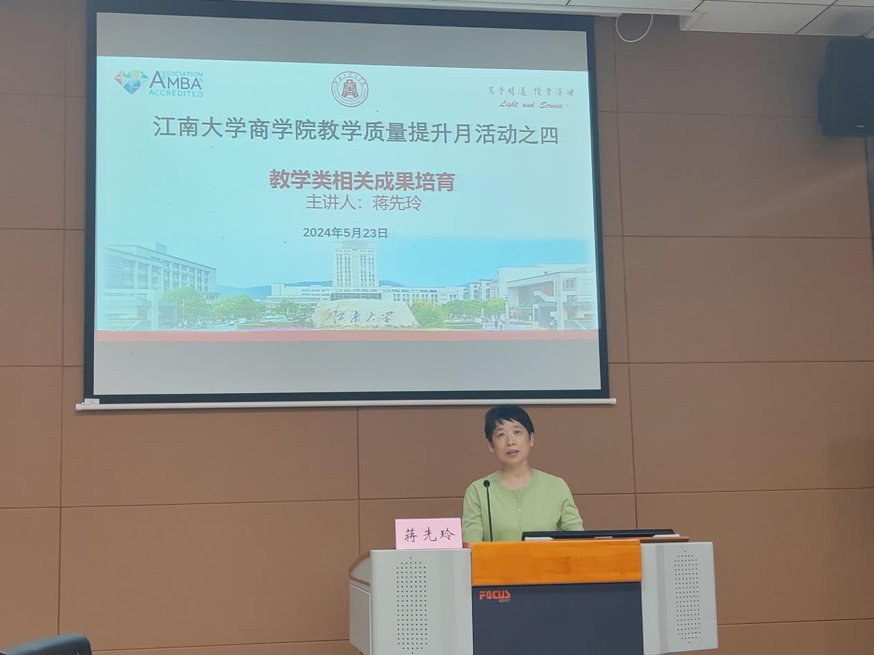 5月23日下午,太阳成集团tyc33455cc邀请对外经贸大学蒋先玲教授为全院教师作《教学类相关成果培育》的专题讲座,讲座由院长浦徐进教授主持。蒋先玲教授在讲座中分享了她在教学成果奖培育与申报方面的经验,指出教学成果奖的申报需要满足一系列要求,需要涵盖转变教育思想观念、创新人才培养模式、推动教学管理机制改革等方面。会上,蒋先玲教授在学院办学定位、专业设置、课程设置、培养路径等方面进行有效规划,并就如何培养人才分享了她的深度思考,希望年轻教师树立将科研成果反哺教学的理念,将教学和科研同步推进。
