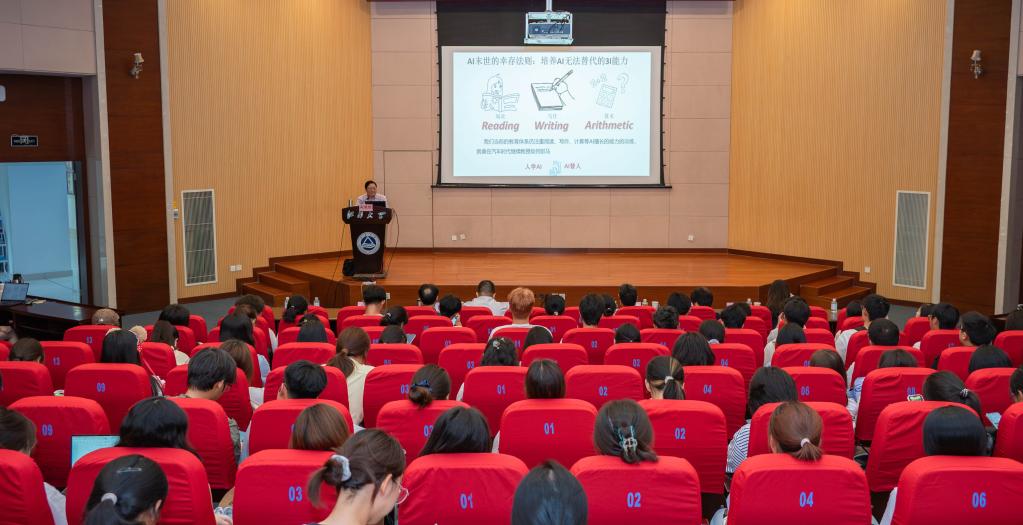 赵曙明教授以《如何管理自己?》为主题作报告,以“进入2025年,组织最关心的是什么”这个现实问题切入,介绍了管理是什么、为什么要进行自我管理以及如何做好自我管理。他围绕管理学大师彼得·德鲁克的管理思想深入讲解,并进一步提出了做好自我管理的具体要求:了解自己,清楚自己的优点和缺点,知道怎样学习与他人共事,明确自己的价值观、人生规划与社会贡献,学会关心他人、融合团队与集体等。随后,他结合自身经历与思考讲授了自我管理的具体方法,并总结了自己八点人生感悟与随想,激励同学们要学会做人、做事、做学问,要有吃苦精神,贯彻终身学习、虚心学习,瞄准方向、抬头看路、低头拉车,争做有知识、有见识、有胆识、能共识的人。