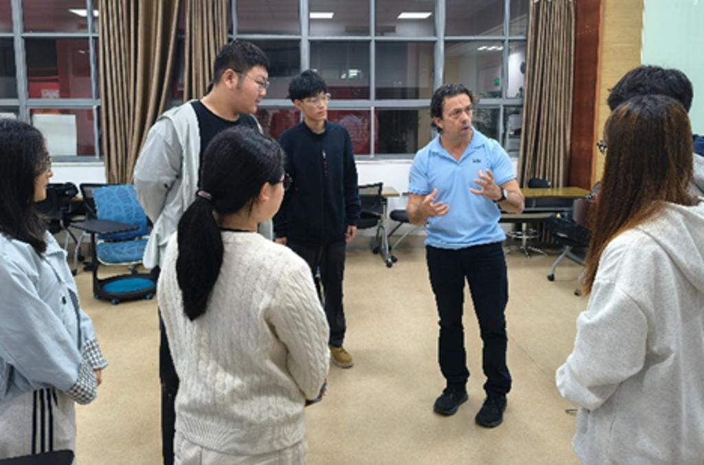 讲座现场,Boris老师以“人工智能对学习与教育的影响”为切入点,与在场同学展开交流。他结合现场互动,系统对比了中澳教育模式的核心差异,指出在学习过程中,教师应扮演引导者与促进者的角色,激发学生自主思考,鼓励多元观点碰撞与独立判断。他强调,AI提供的是标准化答案,而人的思维具有无限可能性与创造性,这正是批判性思维教育的核心价值所在。