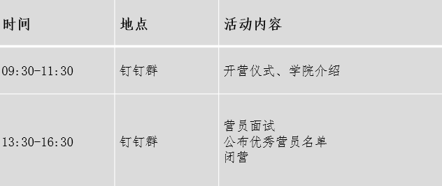 2、资格审核:7月19日由学院确定入选名单,请及时登录申请系统查询。入选营员须在7月20日前加入我院夏令营钉钉群,逾期未加入视放弃此资格。