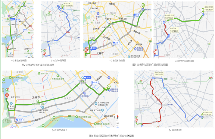 (1)无锡站、无锡东站、苏南苏南硕放国际机场至长广溪宾馆路线图