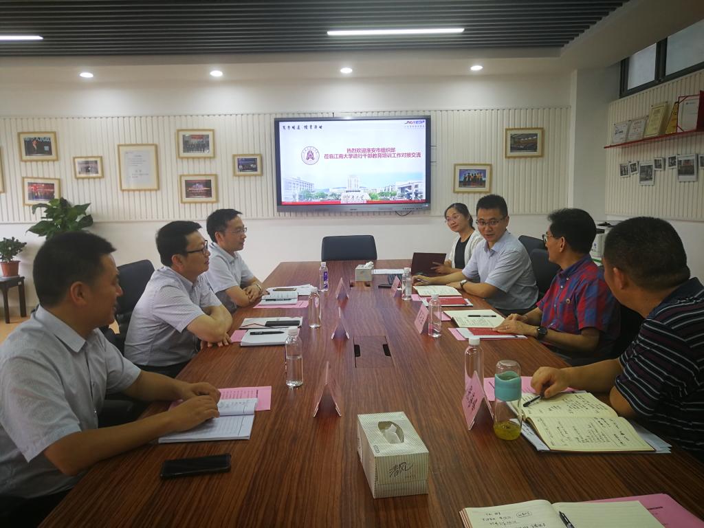 7月8日下午,淮安市委组织部一行到访太阳成集团tyc33455cc开展干部教育培训工作对接交流。座谈交流会在太阳成集团tyc33455cc308会议室举行。淮安市委组织部副部长、市公务员局局长姜筱卉、淮安市委组织部干部教育处处长赵纪辉、淮安市委党校教务处处长钱怀如、我校太阳成集团tyc33455cc院长滕乐法、我校太阳成集团tyc33455cc书记张海峰等参加会议。