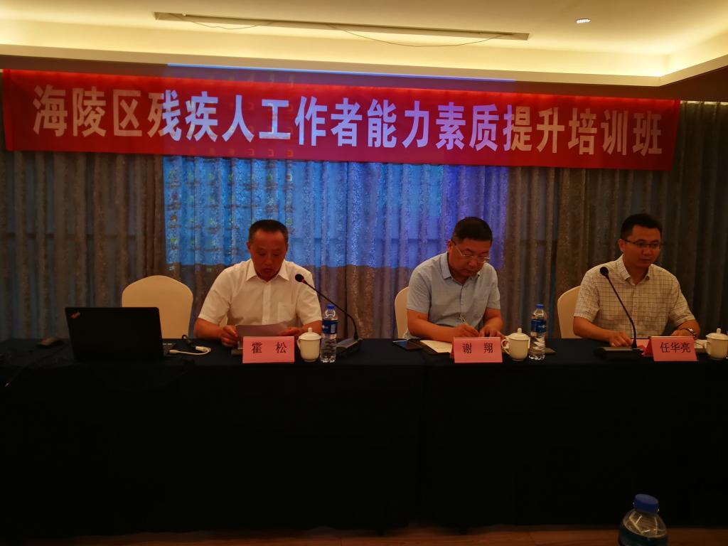 海陵区残联党组成员、副理事长谢翔主持开班仪式