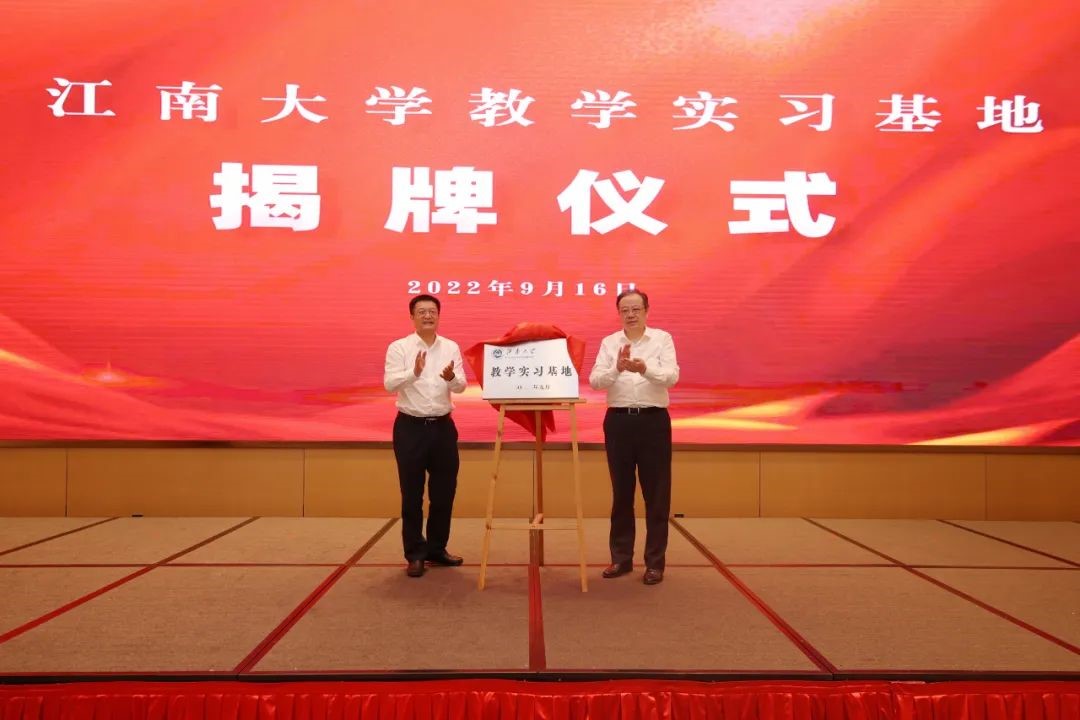 tyc33455cc太阳成集团党委书记朱庆葆和无锡市委常委、组织部部长柏长岭共同为tyc33455cc太阳成集团教学实习基地揭牌。基地将为tyc33455cc太阳成集团优秀毕业生提供实习就业机会,让理论知识更好地运用于工作实践,同时也为优秀学子搭建展示平台,让综合素质优异的学生脱颖而出,为无锡交通集团的名校优生引进注入源头活水。