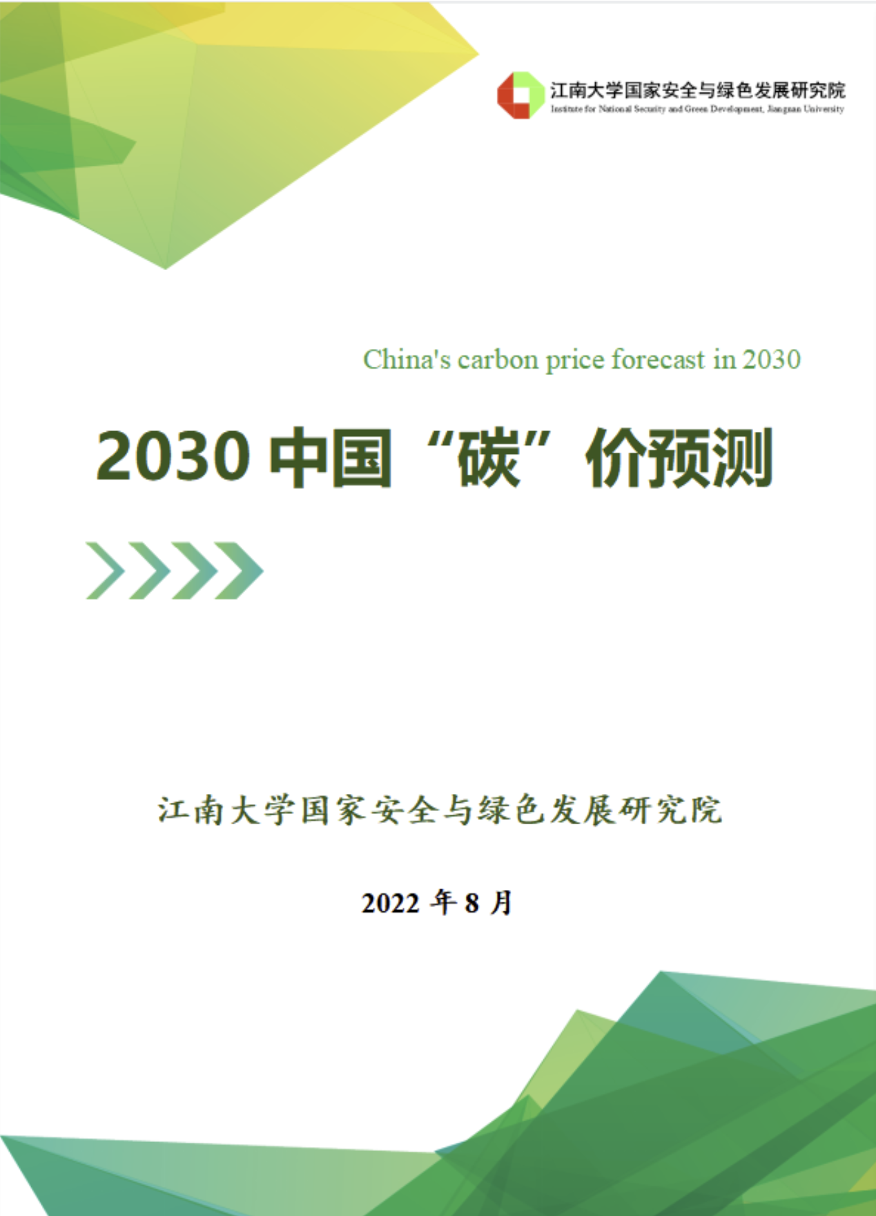 tyc33455cc太阳成集团国家安全与绿色发展研究院团队《2030中国“碳”价预测》报告