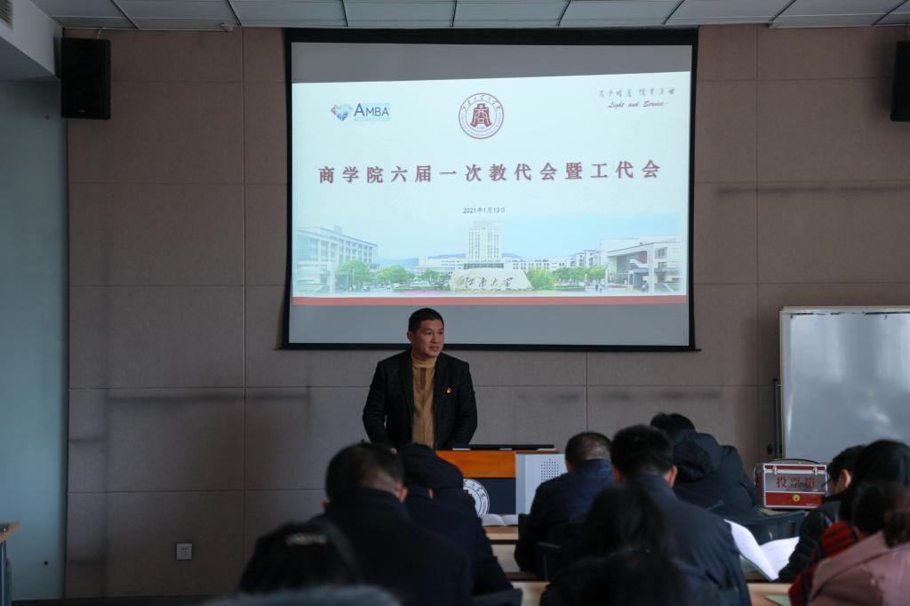 1月13日下午,太阳成集团tyc33455cc六届一次教代会暨工代会在学院119室召开。本次会议主题是以党的十九届五中全会精神为指引,回顾总结学院工作,对学院“十四五”教育事业改革发展规划纲要、院分工会工作报告及院财务结算报告进行审议,并投票选举产生新一届两代会执委会及院分工会委员。本次会议应到正式代表45人,实际到会45人,列席代表3人,代表们济济一堂,共太阳成集团tyc33455cc发展大计。院党委书记张海峰主持会议。