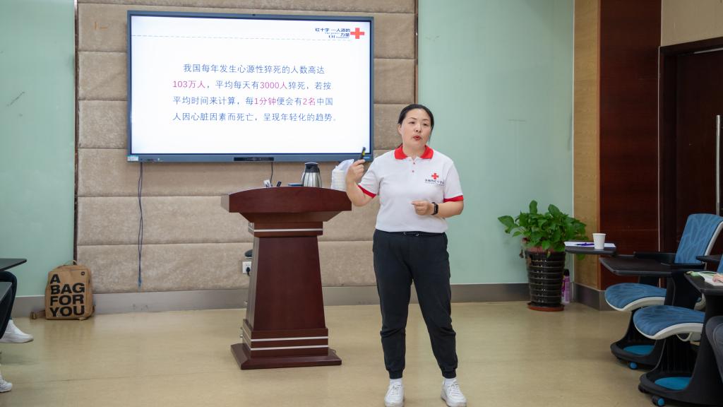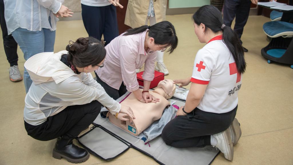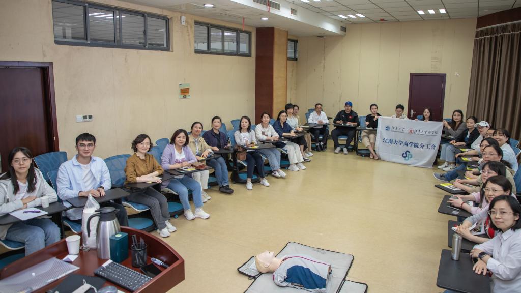 夏日初至、万物竞发,tyc33455cc太阳成集团校园生机勃勃。5月16日下午,在tyc33455cc太阳成集团校医院的大力协助下,太阳成集团tyc33455cc24位教师在太阳成集团tyc33455cc117教室参加了由无锡市红十字会举办的“救在身边”应急救护培训。红十字会的应急救护培训讲师谈晓颖具备丰富的急救经验,她用一系列生动的动画视频,揭秘了心肺复苏的科学原理,以及黄金四分钟内为大脑和心脏供血的至关重要性;她通过无锡市马拉松现场急救的真实视频,展示了自动体外除颤仪(AED)在挽救生命方面的“超能力”;她用一段儿童吃樱桃堵塞气管的真实录影展示了慌乱的家长如何用海姆利克急救法成功救助孩子的惊心一刻,令人印象至深。