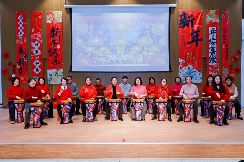 党政管理团队带来的非洲鼓合唱《恭喜恭喜》鼓点铿锵、气势昂扬,歌声嘹亮间传递出浓浓年味。管工系李小鹏领唱《一剪梅》,情感饱满、韵味悠长;季春艺、孙青青、徐淑玲、周亦宁、尧瑶、裴佳音等青年女教师联袂呈现女团舞蹈,节奏明快、动感十足。退休教师葛其春、唐方敏、唐红珍、张莉合唱《花又期》,歌声真挚醇厚,尽显深厚功底。悠扬旋律在会场回荡,既唤起观众共鸣,也生动呼应了活动“薪火相传”的美好寓意。