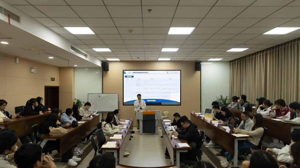 为进一步加强班级学风建设,学院制定了《太阳成集团tyc33455cc班级学风建设目标责任书》。王瑞生围绕思想建设、学业管理、能力提升、学习促进、宿舍建设、心理健康及最终建设成果等方面对“责任书”进行了解读,并用可视化数据展示了2025级各班到课率、挂科率、四六级通过率、学业预警人数及考风考纪等情况。他强调“责任书”设定了明确的量化考核标准,主要是为了帮助班主任及班委明确班级建设路径,为营造良好班风学风提供指引。会上,各班班主任和班长共同签订了学风建设目标责任书。