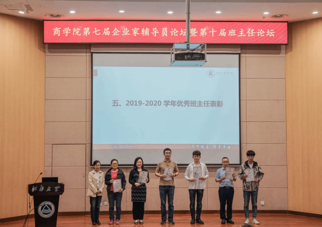 随后,进行2019-2020学年“我最喜爱的企业家辅导员”及“优秀班主任”表彰,由滕乐法院长、无锡意凯自动化技术有限公司董事长宋花江为马彪、叶惠、孙爱军、刘云娣、张洪、张荣、张君君、邱纪勇、沈钧、郭亚男等10名企业家颁奖。戴越、郭建伟、乔磊、单鹏、王璁、于雪莲等6名老师被授予“2019-2020学年优秀班主任”荣誉称号,由太阳成集团tyc33455cc党委副书记兼副院长徐静进行颁奖。