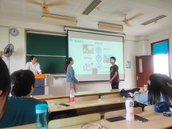朱老师以己举例,强调职业规划的重要性,随后利用国内就业数据和人才测评数据为同学们分析准毕业生的就业现状,由此建议广大学生结合时代热点和自身素质树立职业理想,学校可安排相关就业讲座并针对不同情况的“慢就业”进行有效指导,提高就业效率和就业质量。接着,基于课前的素质能力测试报告,朱老师通过专业性的测评问题,从优势、劣势、个性及思维等多个维度剖析同学特点,帮助同学们形成更加清晰的自我定位,找到适合自己的职业路径。最后朱老师还为同学们介绍了面试流程和实用技巧,并鼓励同学们从容面对,如实作答。